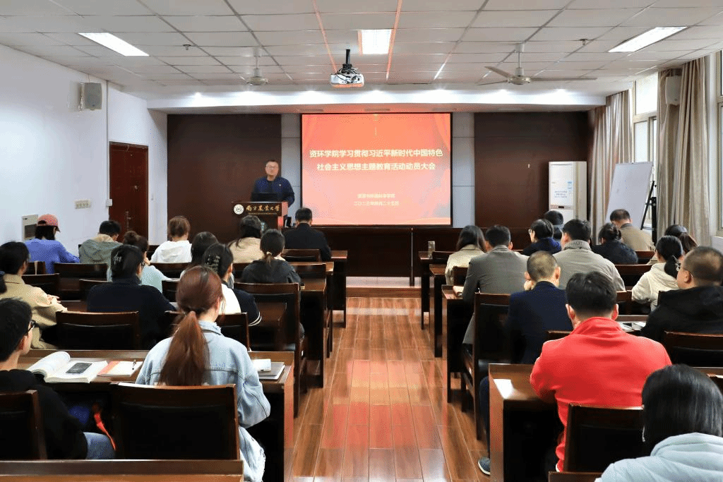 学习贯彻习近平新时代中国特色社会主义思想主题教育动员大会在资环楼B211报告厅举行,院党委书记、院主题教育领导小组组长全思懋作动员讲话,院党委副书记、院长李荣主持会议。院领导班子成员、行政人员、各党支部书记及师生党员代表50余人参加。