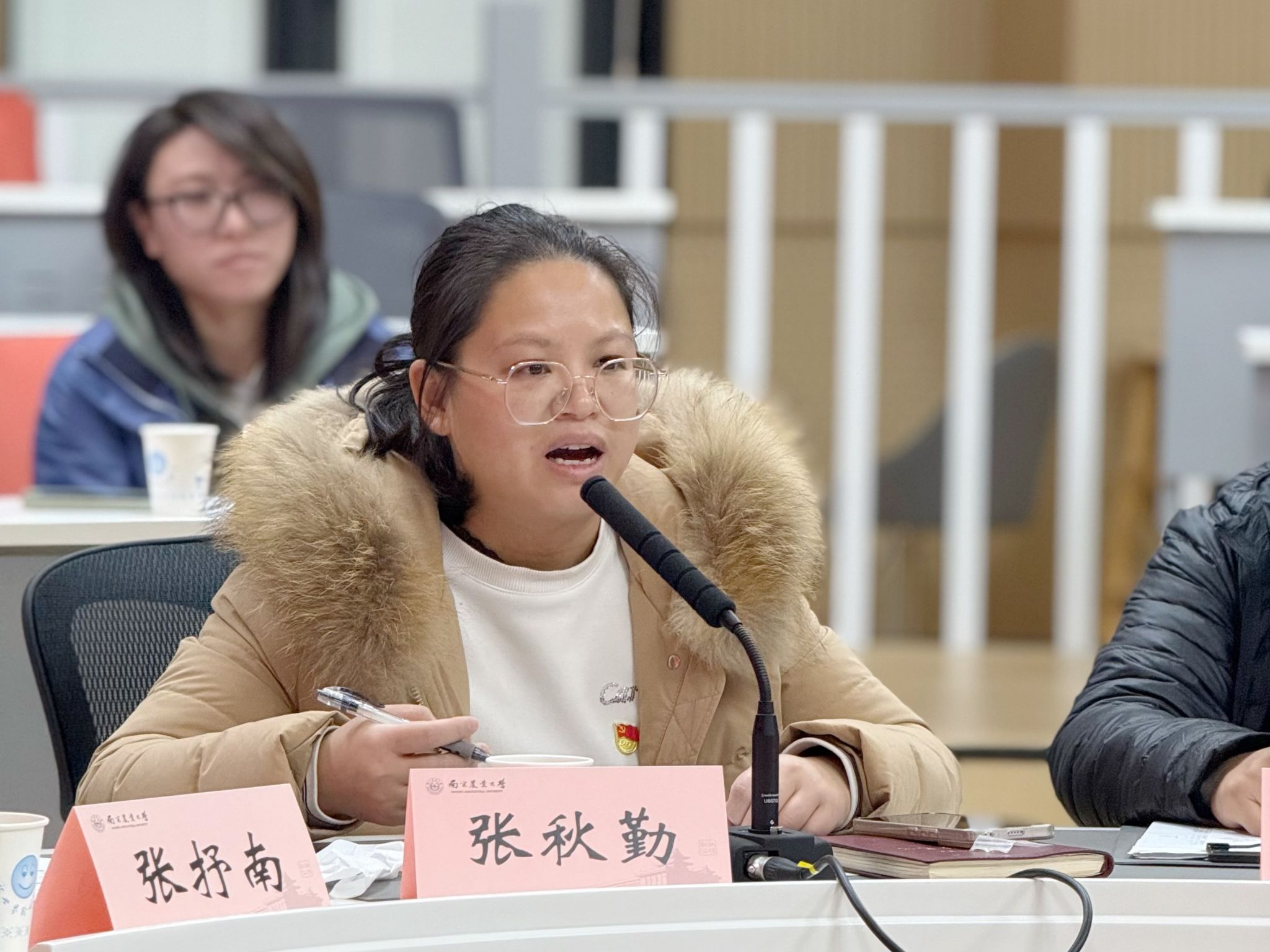 食品学院王聪老师谈到,薛其坤院士团队“聚焦真需求,死磕真难题”的品格令人深受触动,要以真实成果助力农业振兴,在育人中筑牢学生的学术诚信与责任担当。张秋勤老师结合自身经历,感恩国家培养,探讨了科技兴农的路径,强调科研既要“顶天”前沿也要“立地”应用,在指导学生时需帮助学生树立农业自信、明确人生目标,对接产业实际需求。