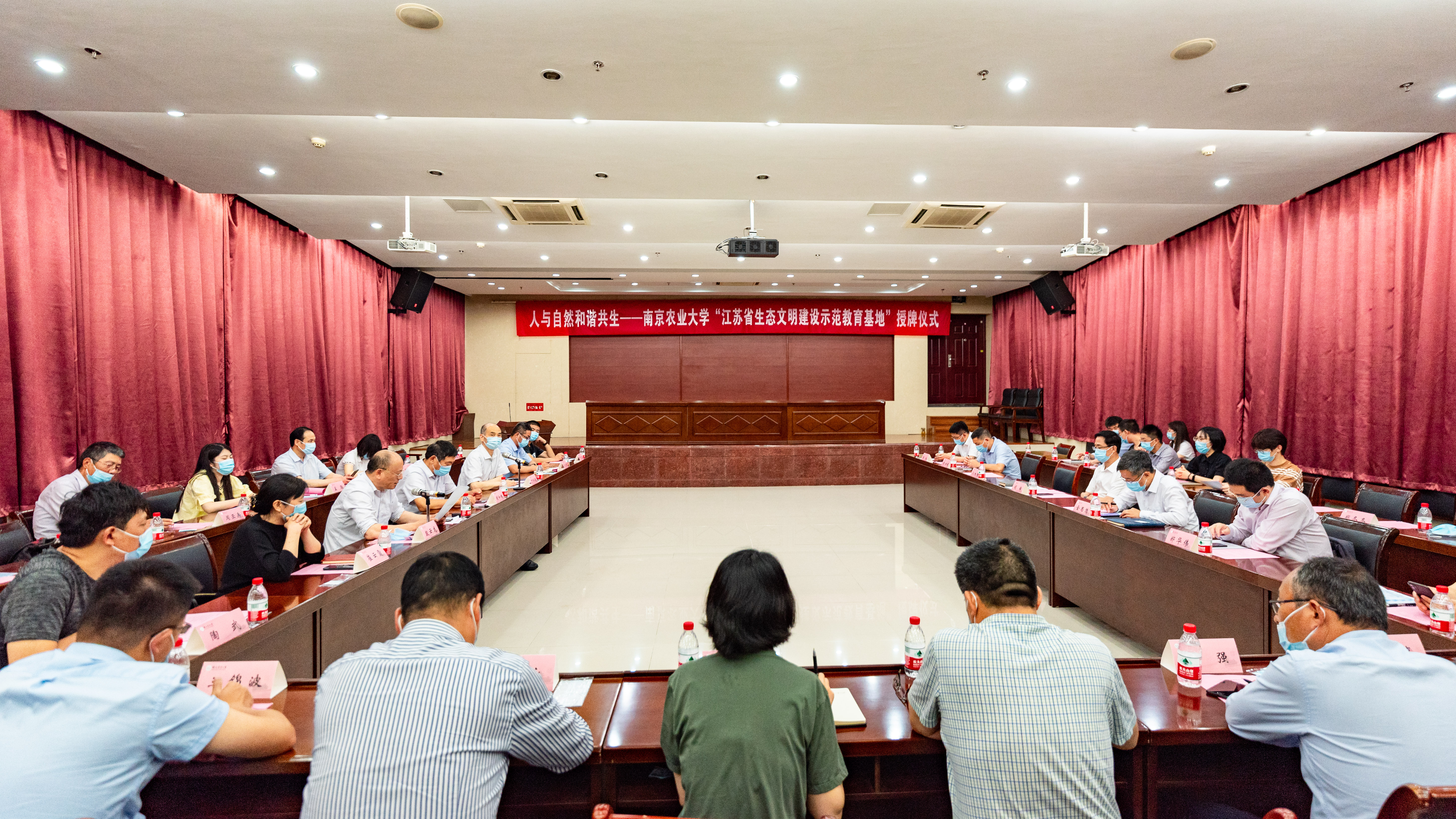 授牌仪式上,胡和林向胡锋授予“江苏省生态文明建设示范教育基地”挂牌。