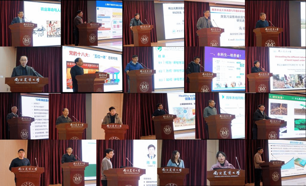 学院教师代表潘根兴教授、赵方杰教授、徐阳春教授、宣伟教授、汪鹏教授,2021年入选国家级青年人才的刘树伟教授、陈爱群教授以及青年教师代表熊武教授、荀卫兵副教授、高翔副教授、贾舒宇副教授、陈静副教授、夏少攀副教授围绕各自科研进展进行了汇报交流。
