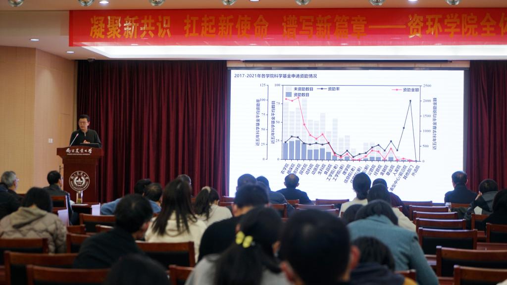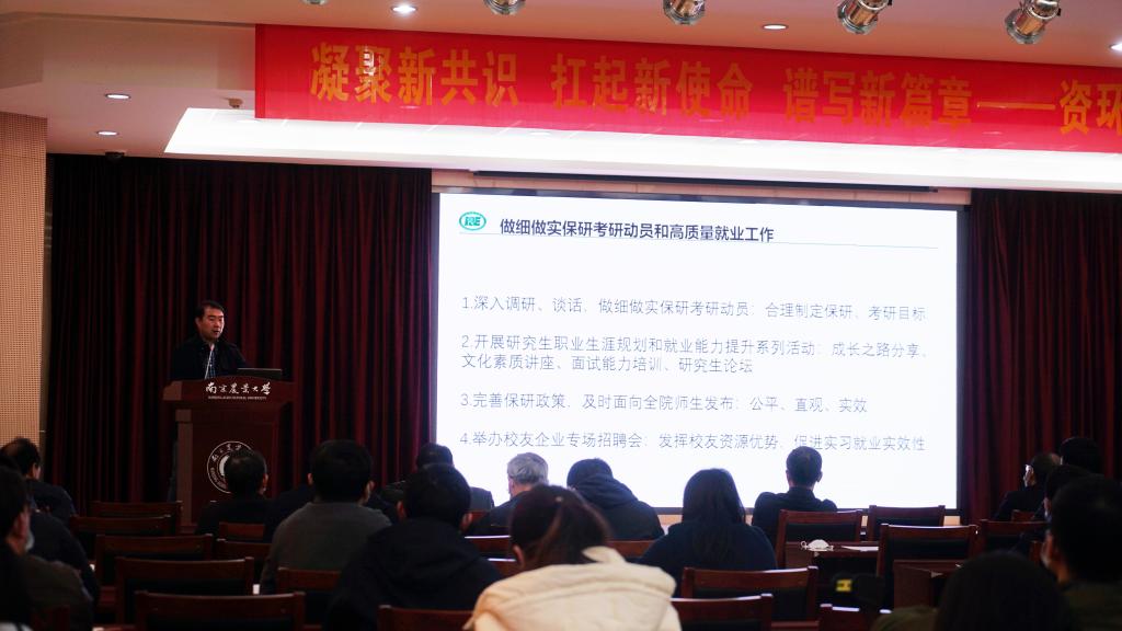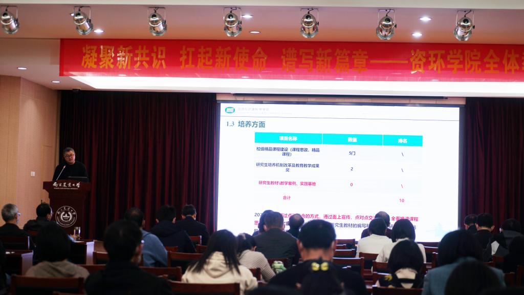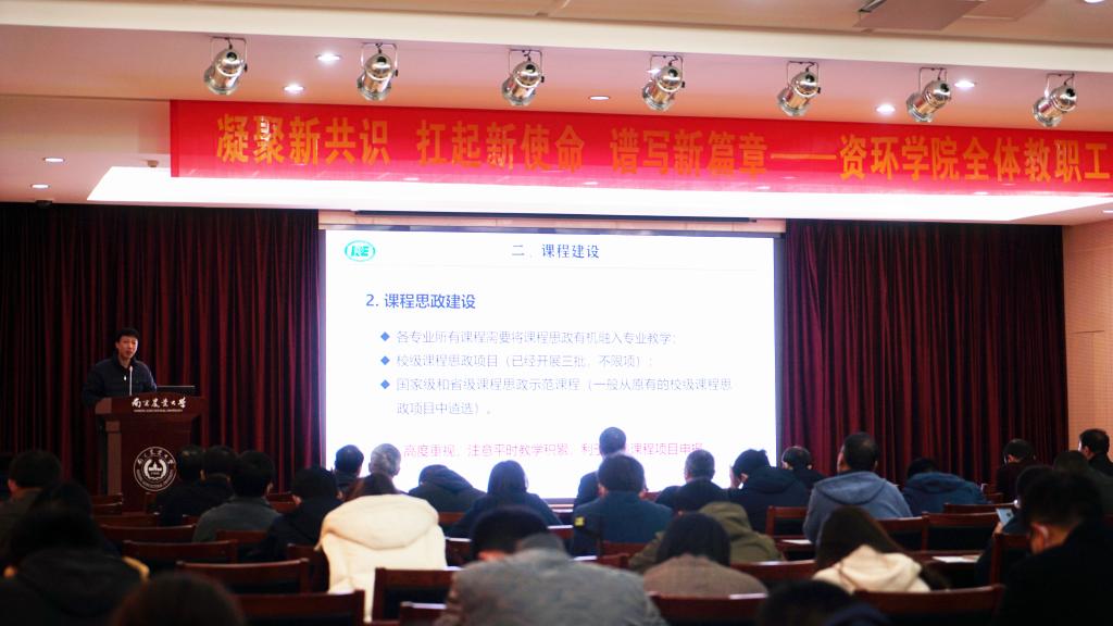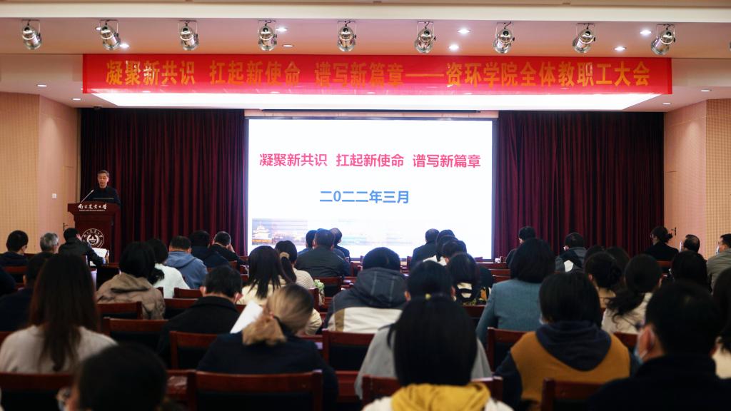隆重召开全体教职工大会。大会旨在全面落实校长陈发棣在学校全体教师大会上的讲话精神,号召全院教职工弘扬“奋斗成就梦想”资环精神,直面问题,破解难题,凝聚新共识,扛起新使命,谱写新篇章。院长邹建文作大会主报告,院党委书记全思懋主持会议。