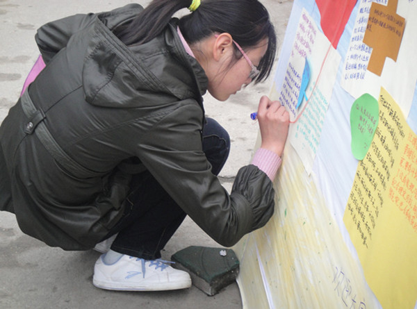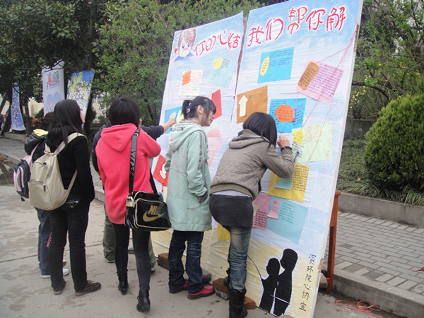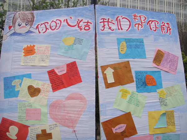 活动前期,心协成员深入大一同学当中,收集了同学们目前面临的烦恼与困惑,并认真挑选了部分具有普遍性和代表性的问题在玉兰路展示。活动中以微博留言的形式进行,现场来自各个年级的同学们热心地答疑解惑,就目前大家普遍的困惑和难题在展板上留下自己的见解。一些同学还在宣传板上提出了新的问题,期待其他同学的答复。