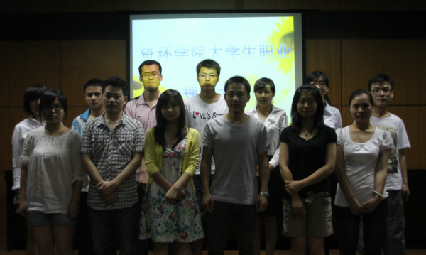 兼职辅导员李长钦、彭益全,江苏省大学生职业生涯规划大赛获奖者庄祖慧。本次比赛由实践企划部的陈川主持。
