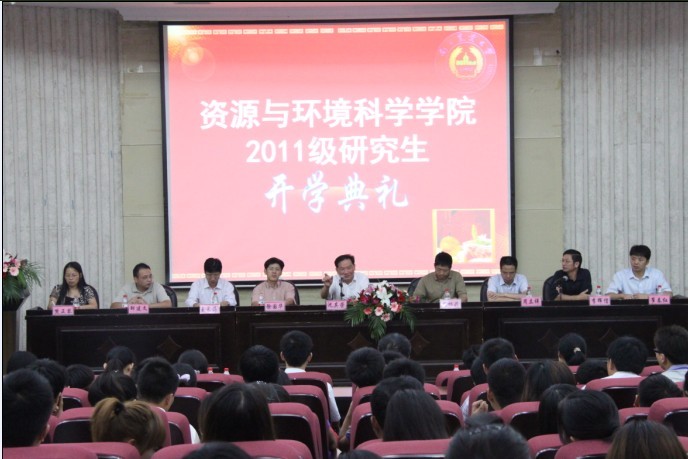 2011级研究生开学典礼在图书馆报告厅隆重举行。副校长沈其荣,土壤学科带头人潘根兴,海洋学科带头人王长海,环境工程学科带头人周立祥,院党委书记李辉信,院长徐国华,党委副书记崔春红,副院长邹建文,导师代表熊正琴以及各研究生导师出席了开学典礼。典礼由院党委书记李辉信主持。