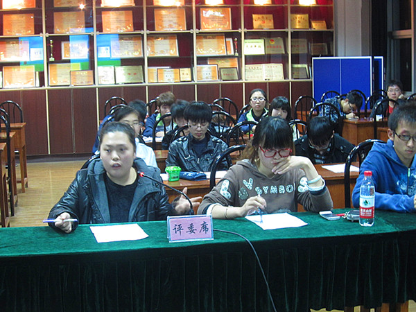第五届辩论队成员担任评委。兼职辅导员潘彤也到场观赛。