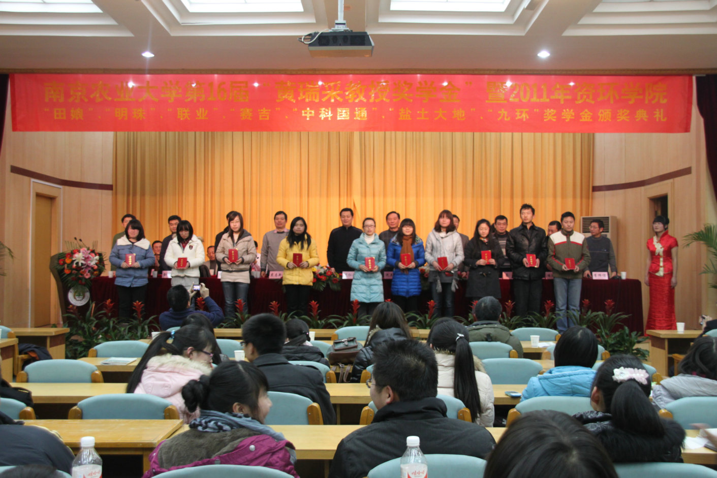 2011年“田娘”、“明珠”、“联业”、“赛吉”、“中科国通”、“盐土大地”、“九环”奖学金颁奖大会在金陵研究院国际报告厅举行。中科院南京土壤研究所所长、中国土壤学会常务副理事长沈仁芳研究员,省农委戴志新副巡视员,我校副校长沈其荣教授及国家环保总局南京环科所、中科院土壤研究所、省农科院、省农林厅、省环保厅等单位的领导、校友,企业负责人、学校部分机关部门负责人、High漫画