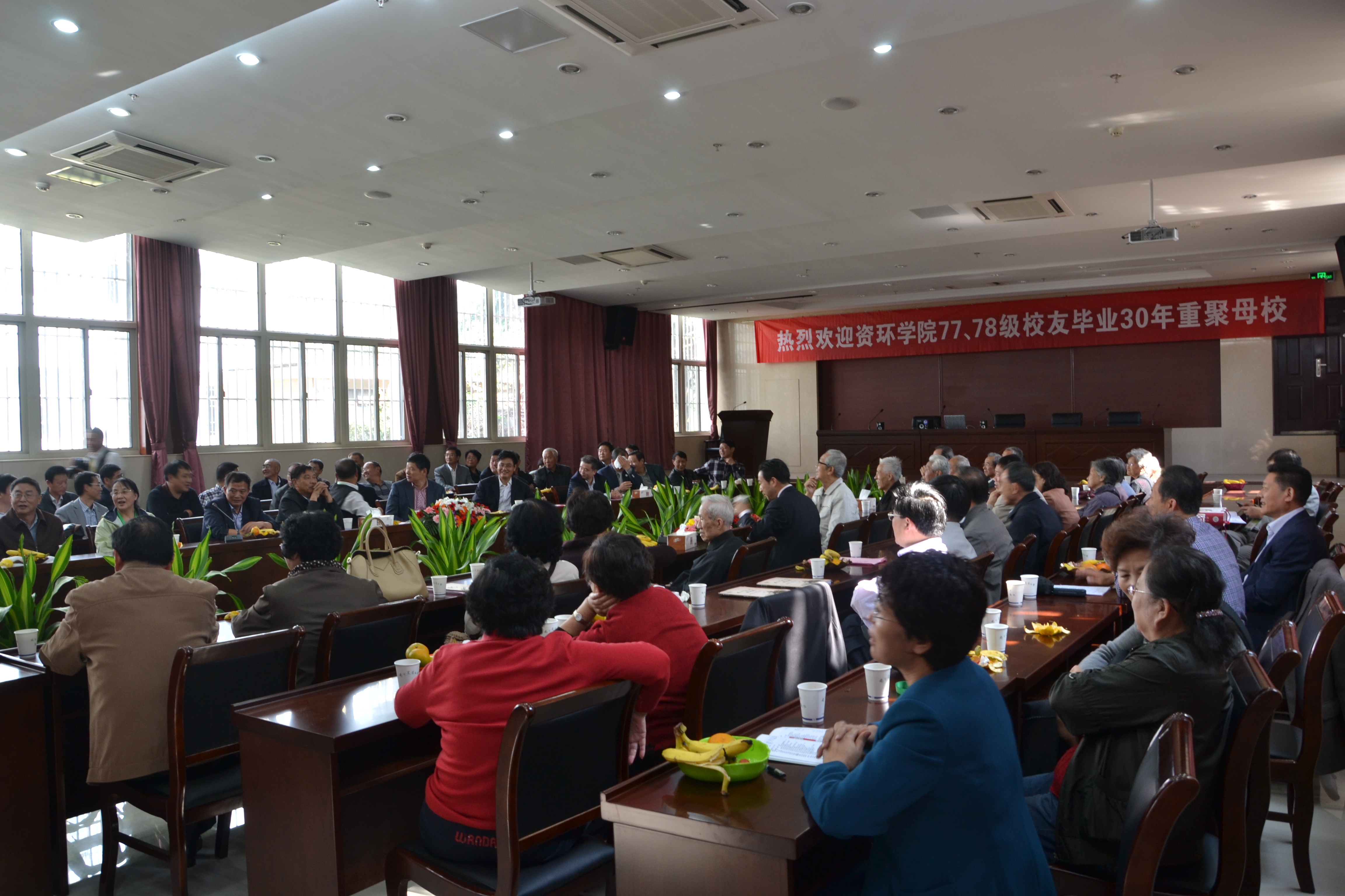 (原土化系)77、78级校友毕业30年聚会在资环楼一楼报告厅举行。80多位77、78级校友、部分当年任课的老教师以及High漫画
