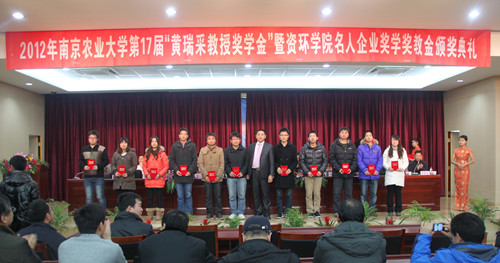 院长徐国华分别宣读了“田娘”、“明珠”、“联业”、“赛吉”、“中科国通”、“盐土大地” 、“新利” 、“宁粮”以及“九环”奖学(教)金获奖名单,并为获奖者颁发获奖证书。