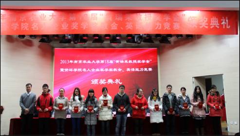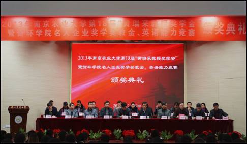 名人企业奖学奖教金、英语能力竞赛颁奖典礼在大学生活动中心隆重举行。江苏省农科院院长、黄瑞采教授基金理事长严少华,中科院南京土壤研究所书记蔡立,江苏省农委副主任戴志新,环境保护部南京环境科学研究所副所长李德波,黄瑞采先生家代表属黄克明,High漫画