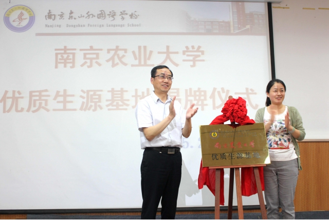 随后,招生宣传组与南京市东山外国语学校签订了优质生源基地共建协议,并进行了授牌仪式,给“东外”师生们赠发了我校的招生宣传材料。