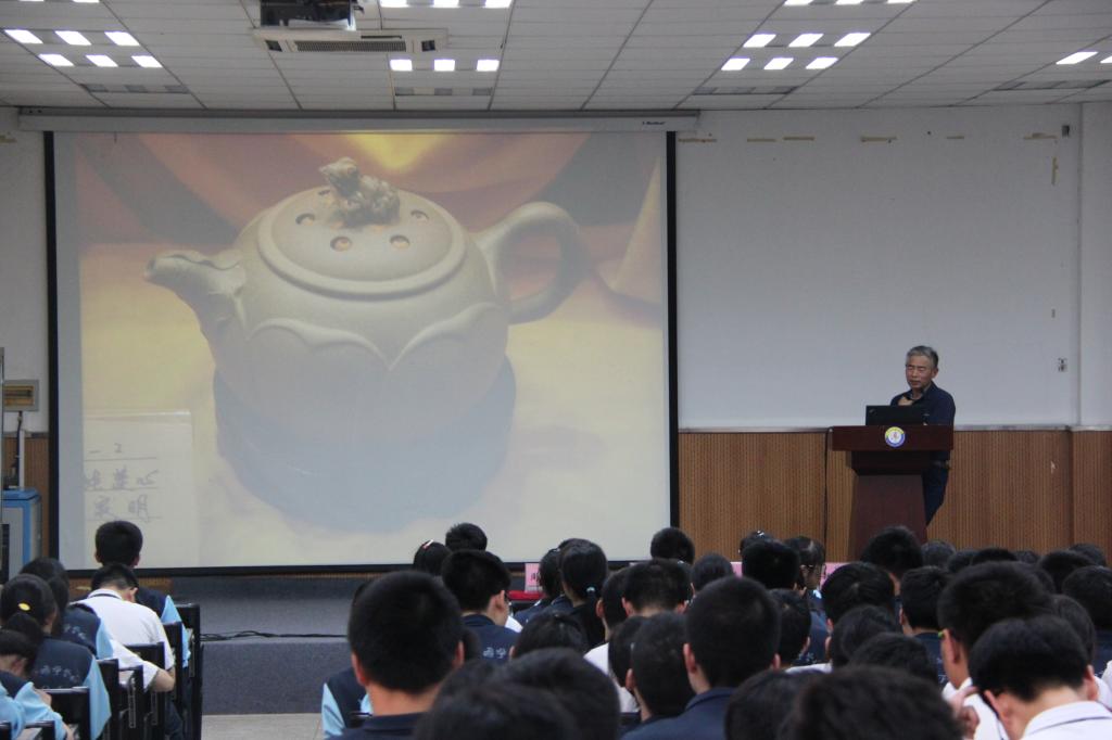 授牌仪式后,宗良纲教授为“东外”师生做了题为《科学与艺术结合的陶艺创作》的科普讲座。宗老师的讲座深受在场的师生欢迎,不时赢得阵阵掌声。
