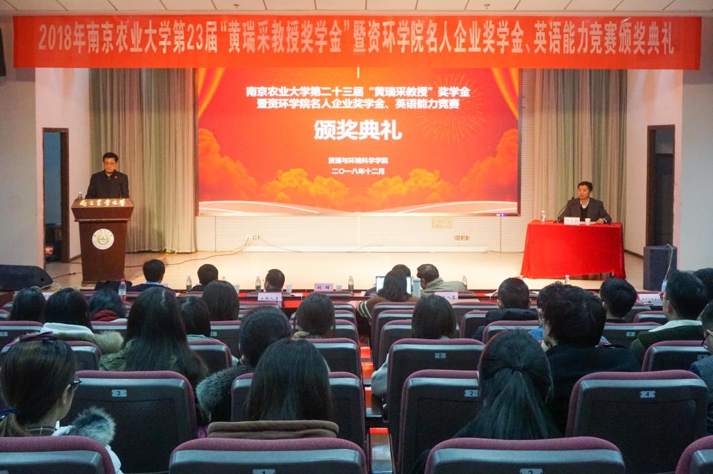 颁奖后获奖代表发言。“黄瑞采教授奖学金”获奖学生代表李舜尧博士表示,黄瑞采教授不怕困难、不忘初心、积极进取的精神一直激励着她不断进步。她提醒同学们,要珍惜大学时光,为今后的道路奠定好基础。企业奖学金获奖代表黄华同学认为,企业设立的奖学金制度是对大家刻苦学习的一种肯定,同时也激励着每位同学学会处世、学会尝试、学会自信,他希望大家都能以一颗平常心看待得失,共同创造美好的未来。“黄瑞采教授奖学金”优秀科技工作者代表王秋君则是代表了已经毕业的资环学子,对黄瑞采基金会和学院老师们的辛勤栽培表达了感谢。他告诫学弟学妹们,科研过程中有很多挑战,大家只有抵住压力,才能实现自己的人生目标。