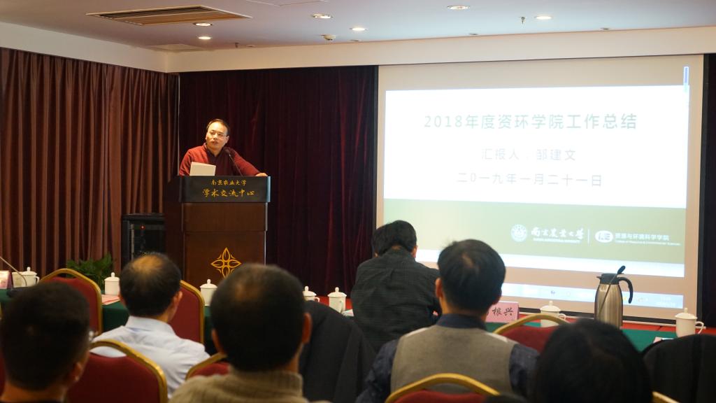 最后,学院院长邹建文教授做了“学院年度总结与2019年规划”的报告。邹院长首先向全院教师总结了2018年度学院取得的各项成绩,同时指出学院的未来掌握在青年教师的手上,他强调青年教师进行科学研究要将科学问题与国家需求相结合,要结合学院学科发展的各个方向确定好自己的科研方向,鼓励青年教师利用团队的平台加强相互之间的交流与合作。最后,邹院长提出学院2019年的工作思路是以农业资源与环境世界一流学科建设统揽全局,多学科融合发展为主线,高水平师资队伍和科研创新为重点,平台和基地建设为支撑,通过科教融合实现一流学科培养一流人才的目标。