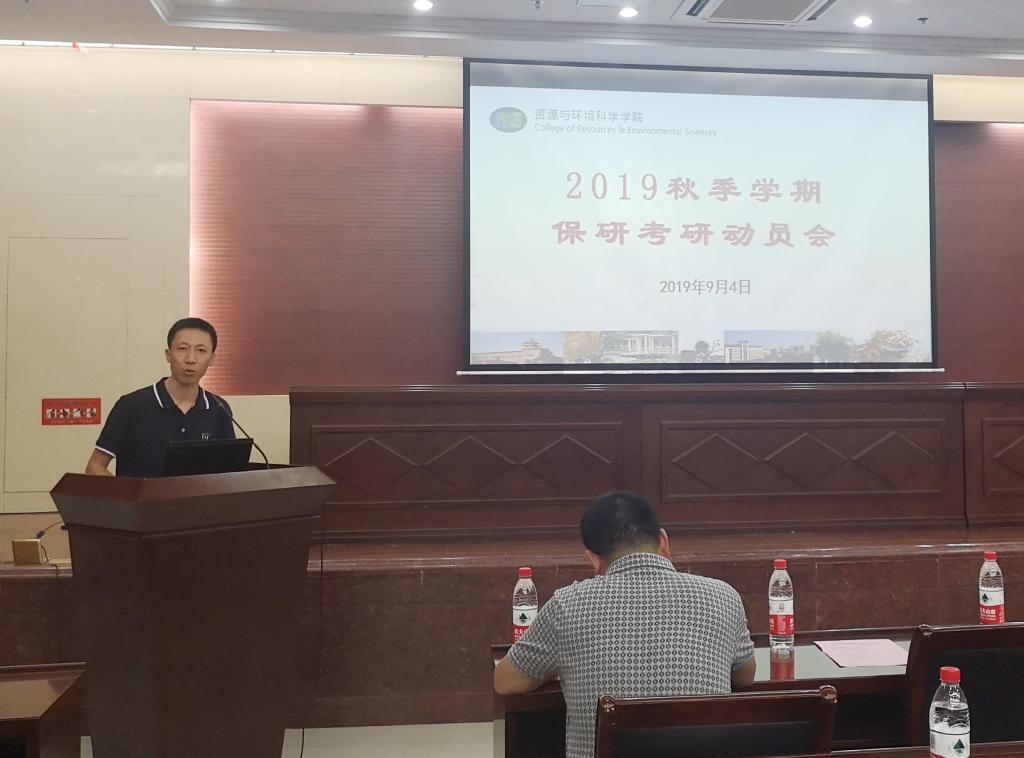 在一楼报告厅举行“2019级秋季学期保研考研”动员大会。此次会议由张旭辉副教授主持,资环院院长、各课题组代表、辅导员、本科教务秘书及2016级本科生出席参加。