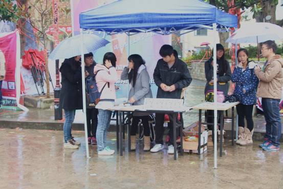 活动现场热闹非凡,很多同学在纸片上写下了自己的遗憾,如“最近学习计划未如期完成”“没有买自行车”等。尽管下着小雨,工作的同学们仍然冒雨宣传,为每一个参与活动的同学,耐心讲解,细致服务,并送上了精美的小礼品。