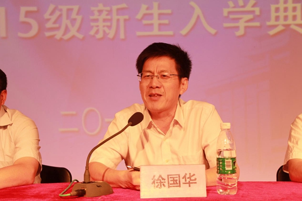 院长徐国华随后分享了他对新生的两点忠告。他说到:“上大学肯定会遇到压力,有压力,是好事。”徐国华引用了微信上一篇文章《看一眼凌晨4点钟的哈佛,就知道中国缺什么》向新生交流了他关于中美国家大学教育差异的观点。他指出,要给本科生一定的学业压力。目前,国内大学在这一点上做的还不够。第二点忠告是“人,最怕的是没有机会。”他鼓励新生抓牢手中的机会,努力学习,充实自己。最后,徐国华祝愿所有新生能在大学校园里找到自己的学习乐趣,发现自己的学习潜力,发展自己与人相处的能力。