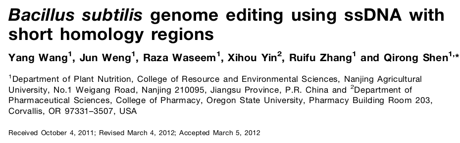 下一篇:Bacillus subtilis genome editing using ssDNA with short homology regions