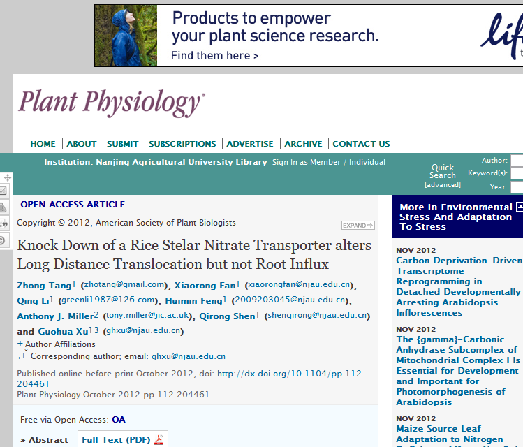 下一篇:Knock Down of a Rice Stelar Nitrate Transporter alters Long Distance Translocation but not Root Influx