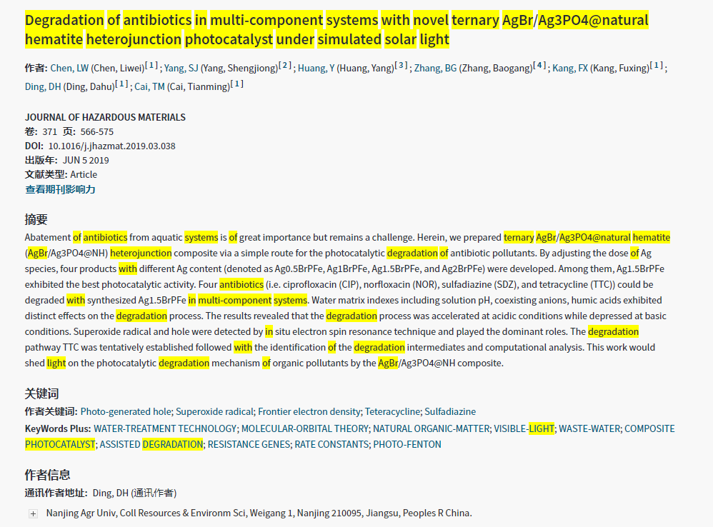 下一篇:Sulfate radical induced catalytic degradation of metolachlor: Efficiency and mechanism