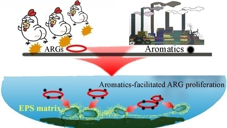 目前,科学界早已了解土壤与沉积物中的抗生素塑造ARGs,但对ARGs传播“帮凶”的角色知之甚少。取代基芳香族衍生物的存在,可能放大原本低强度抗生素污染系统中的ARGs风险。因此,当进行ARGs环境迁移、衰减、风险评估与修复的相关研究时,需要综合考虑芳香族衍生物、甚至其它强化因素在ARGs风险调控方面的环境“帮凶”角色。