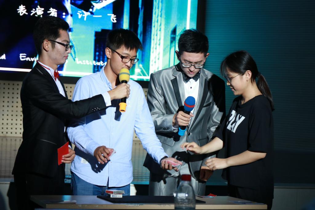 的许一飞同学在中场的时候为大家带来了魔术表演,娴熟的手法与观众的互动让这场魔术秀圆满地结束。