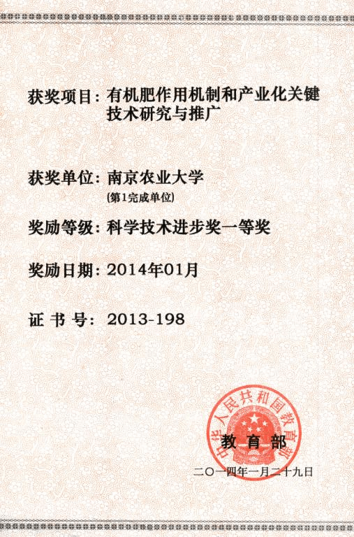 下一篇:国家科学技术进步奖二等奖“有机肥作用机制和产业化关键技术研究与推广”