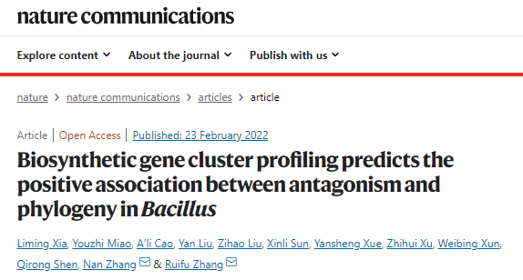 该研究得到了国家自然科学基金重大项目和中央高校基本科研业务费等项目的资助。博士生夏丽明和缪有志副教授为共同第一作者,张楠副教授和张瑞福教授为共同通讯作者,沈其荣院士、徐志辉副教授和荀卫兵副教授等参与了该项研究。张瑞福教授课题组近年来围绕微生物肥料功能菌株芽孢杆菌SQR9的益生机理及其与植物的互作机制,以及根际微生物群落结构和功能装配方面开展了一系列研究工作,相关成果发表在Nature Communications、Cell Reports、Microbiome、The ISME Journal、Plant Physiology、Soil Biology & Biochemistry、Plant Cell & Environment、Environmental Microbiology、Applied and Environmental Microbiology、Molecular Plant-Microbe Interactions等国际权威期刊。