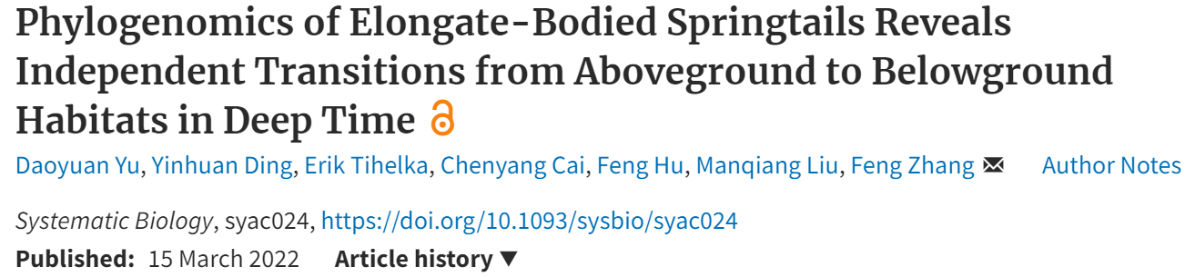 近日,国际演化生物学顶级期刊Systematic Biology在线刊登了题为“Phylogenomics of Elongate-Bodied Springtails Reveals Independent Transitions from Aboveground to Belowground Habitats in Deep-Time”的研究论文。该研究由High漫画