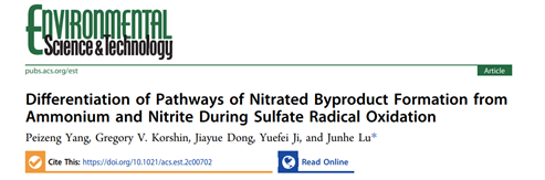 相关成果近日以“Differentiation of Pathways of Nitrated Byproduct Formation from Ammonium and Nitrite During Sulfate Radical Oxidation”为题发表在环境领域权威期刊Environmental Science & Technology上。