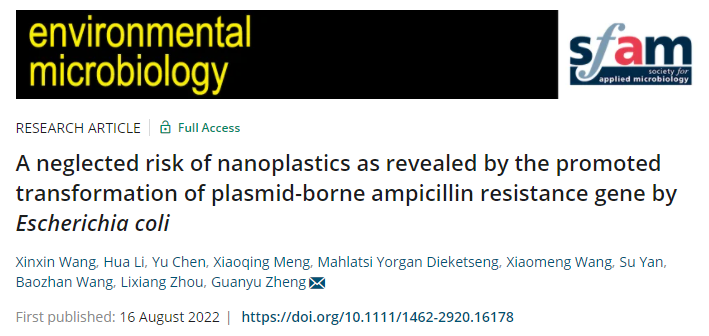 周立祥教授团队在环境微生物研究领域权威期刊Environmental Microbiology发表了题为:“A neglected risk of nanoplastics as revealed by the promoted transformation of plasmid-borne ampicillin resistance gene by Escherichia coli”的最新研究成果。