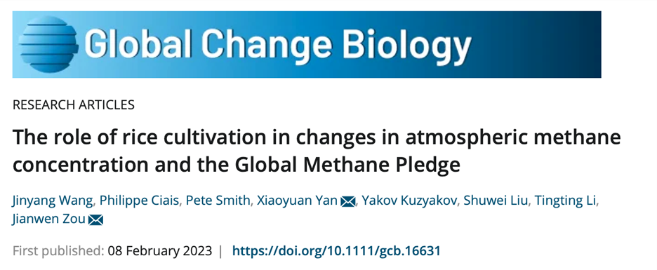 邹建文教授团队在《Global Change Biology》期刊发表了题为“The role of rice cultivation in changes in atmospheric methane concentration and the Global Methane Pledge”的研究论文,解析了全球水稻种植对大气甲烷浓度变化及实现《全球甲烷承诺》的贡献。
